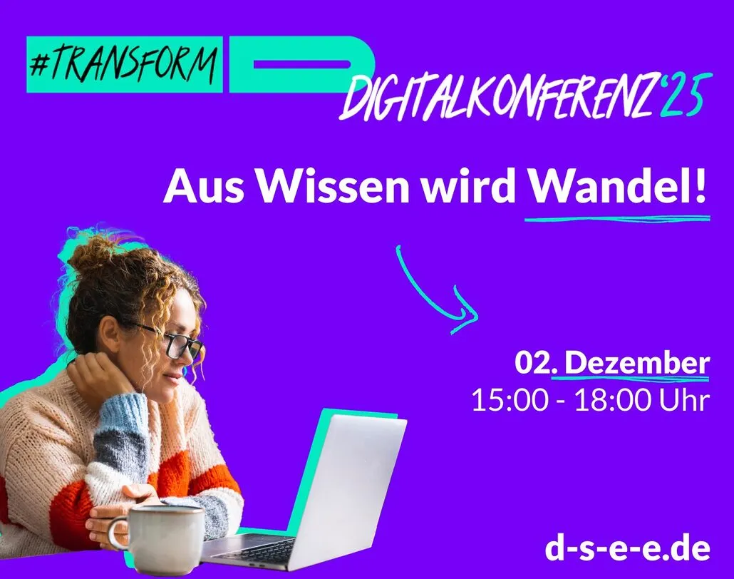 Wir laden euch ein zur transform_D Digitalkonferenz am 2. Dezember 2025 für einen Nachmittag voller Wissen, Austausch und Inspiration. Im Eröffnungs-Panel diskutieren wir, wie Zivilgesellschaft und Ehrenamt Transformationsprozesse aktiv mitgestalten können. Anschließend erfahrt ihr in 7 interaktiven Online-Workshops, wie ihr den digitalen Wandel für euer Engagement nutzt, Klimaschutz vorantreibt und den gesellschaftlichen Zusammenhalt stärkt. Auf unserer Open Stage lernt ihr erfolgreiche transform_D Projekte und aktuelle Forschungsergebnisse kennen – und nehmt neue Denkanstöße und Anregungen für eure eigene Arbeit mit.